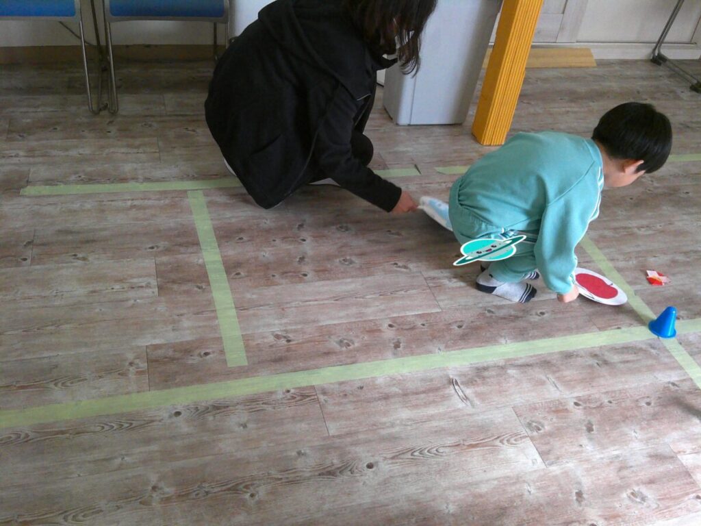 先生と競争したのですが、もちろんお友達の勝ち!!