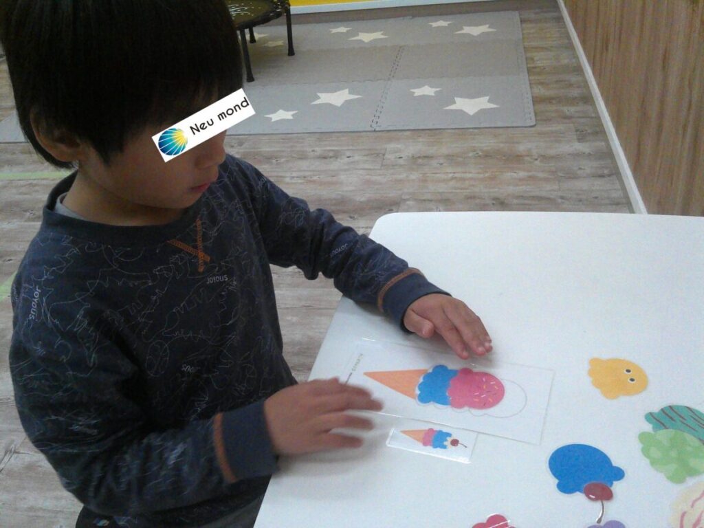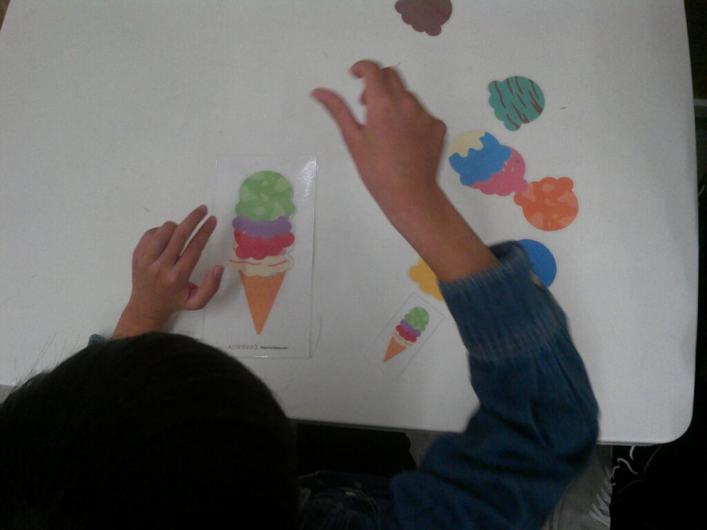 見本を見て、同じアイスを作ろう!沢山の種類のアイスから、色をよく見て選びます。