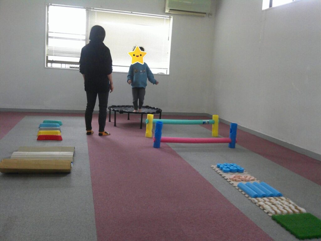 2階の広いお部屋へ移動!今日はサーキットトレーニングを行いました。ジャンプやトランポリン、キャタピラーなどたくさんの種目で身体を動かしましたよ☺