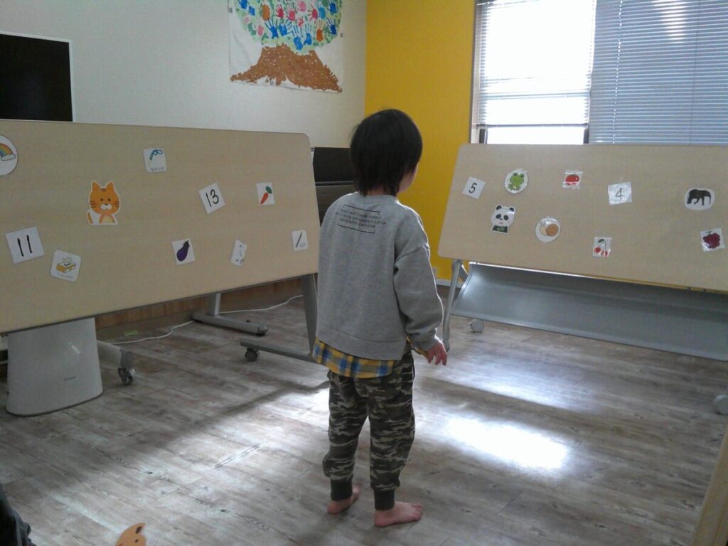 午後は「宝探し」です!指定された絵カードを探し当てます。小学生は掛け算や足し算の答えの数字カードを探すのにも挑戦しました✨