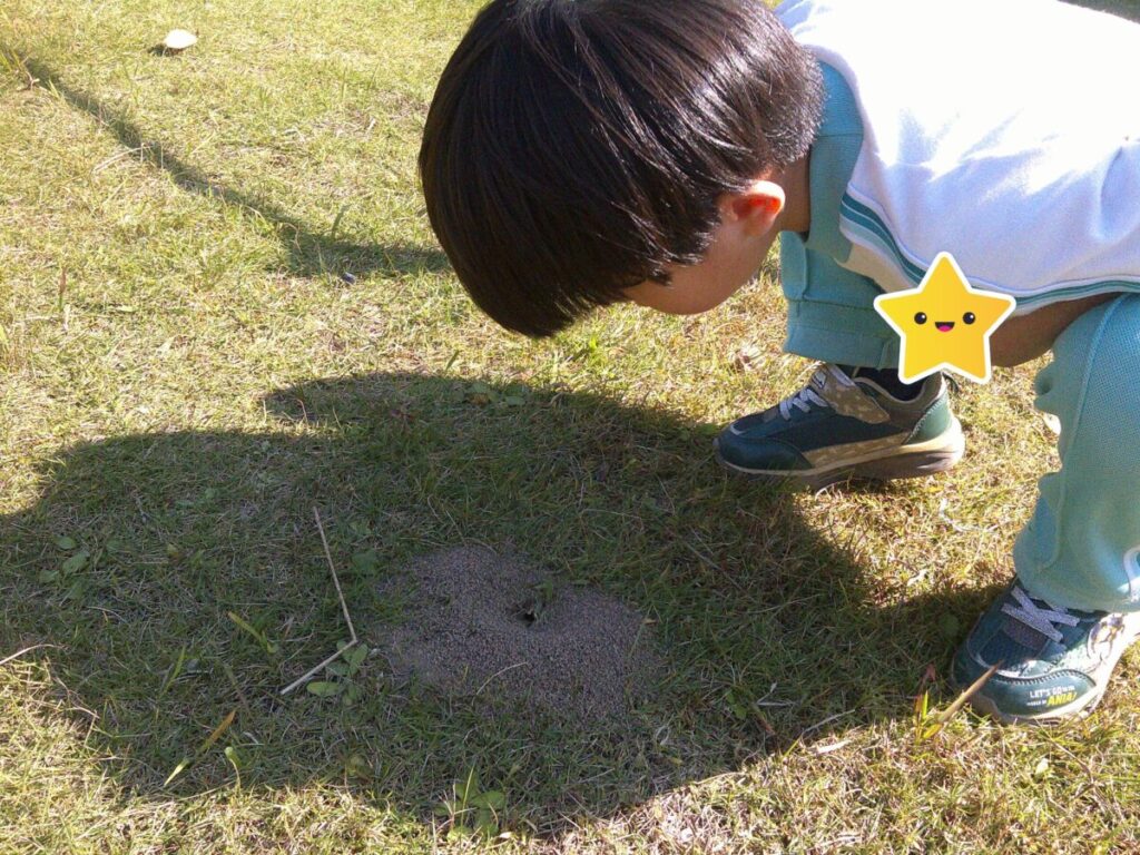 他にも、アリの巣を見つけたり、落ちている柿をダンゴムシが食べていたり、