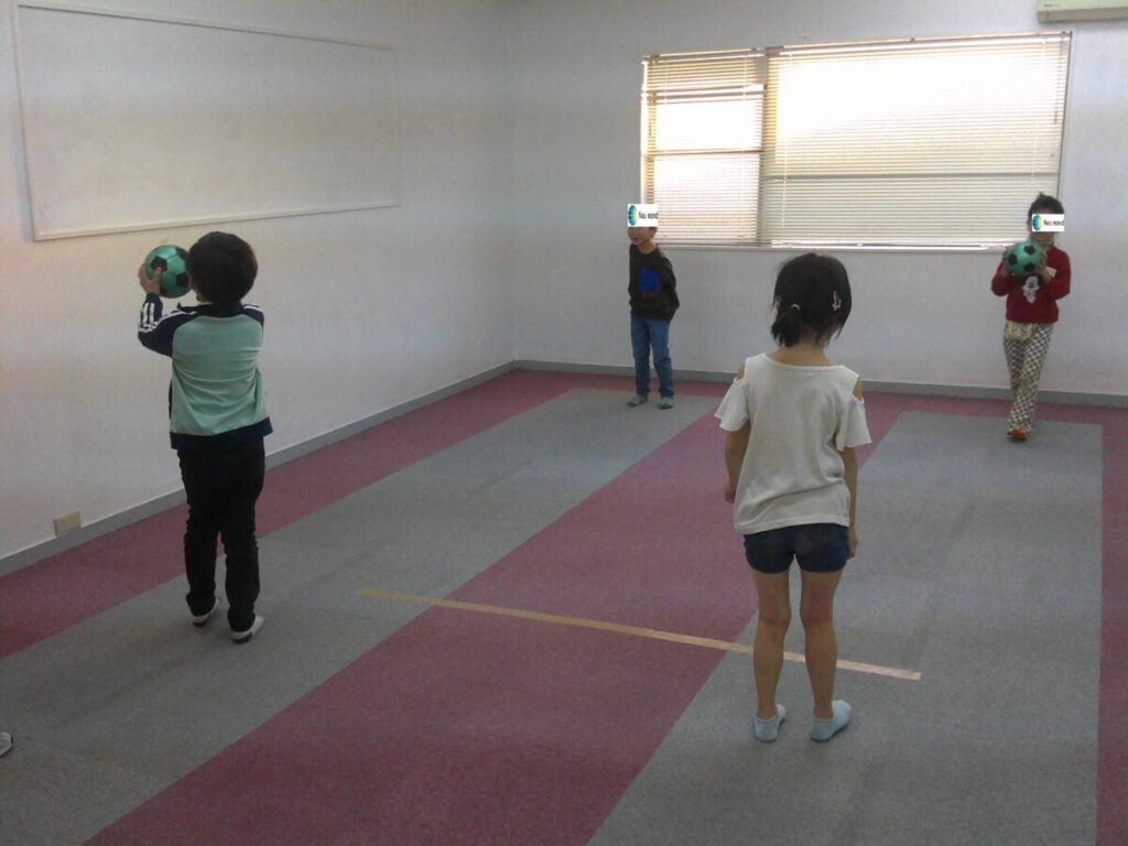 今日はドッチボールをしました🎵まずは二人一組になって投球練習😉
