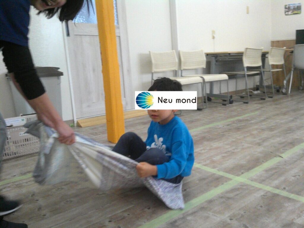 タオルブランコでゆらゆらした後は、タオルそりでびゅーん!