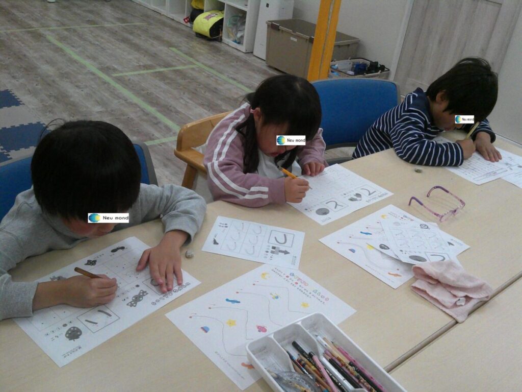 その他、線なぞりやひらがな練習も行いました。書きなれていない文字があっても、「難しいんだよね~」と言いながら、自ら書き直す姿が見られました👏🏻