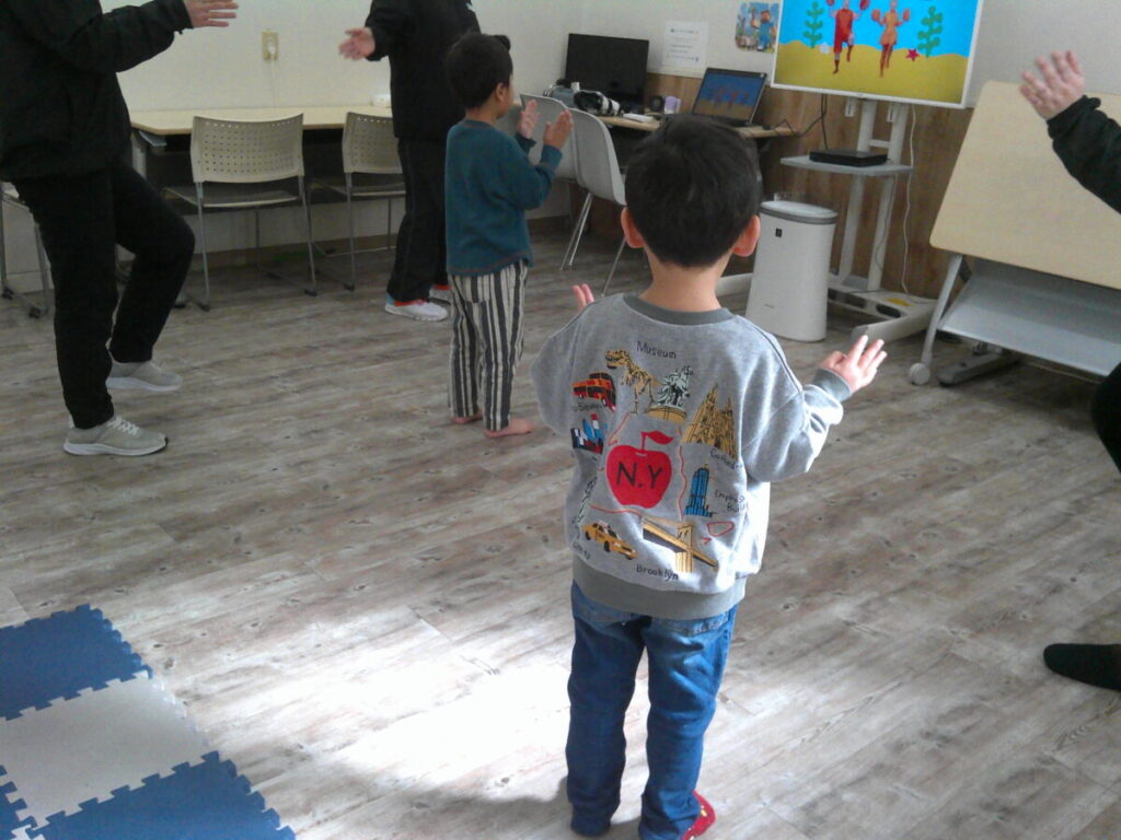 “ちょっとだけ体操”では、足を大きく開いてバランスを上手にとっていました✨