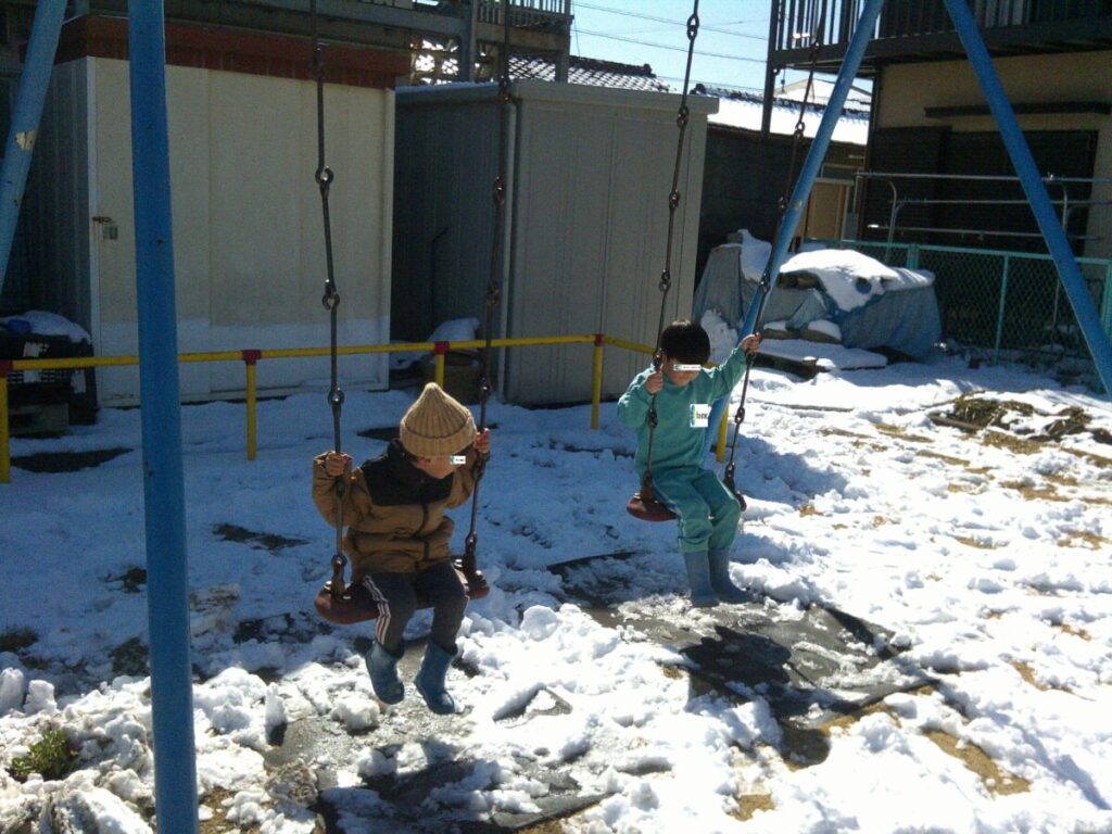 小さなお友達は、公園で雪遊びをしました⛄凍っている雪はないか、触って確認していました😊