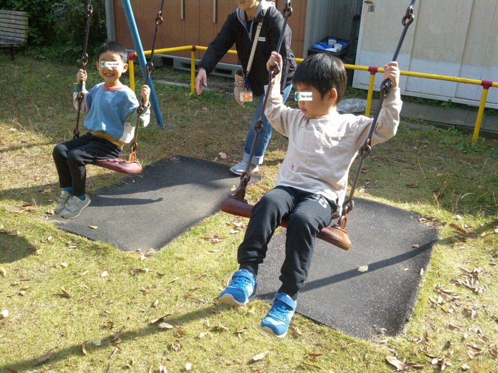 ブランコは大人気で、貸し借りの声掛けもしましたよ🎵「伸ばして~」「曲げて」の声掛けに合わせて自分たちで足で漕ぐ練習もしました✨