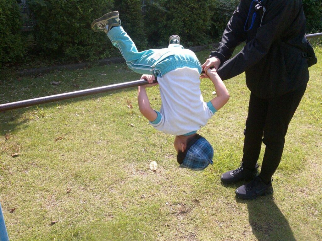 小さなお友達も公園へ✨前回りに夢中になっていたお友達。先生たちみんなに披露してくれました😊