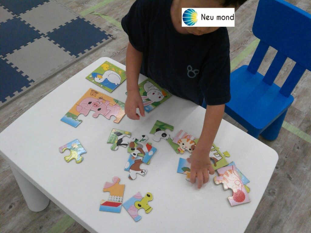 タオルシーソーに乗ってびゅーんと進み、パズルのテーブルへ。