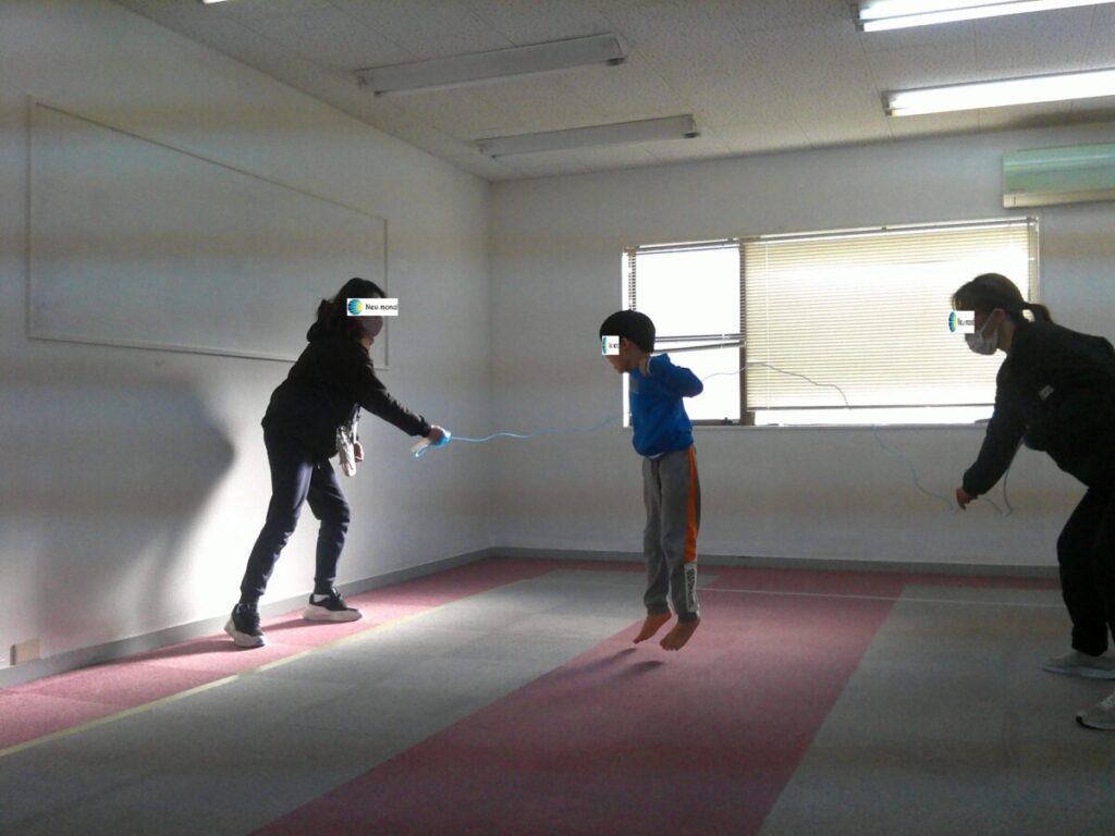 リズムをとって、一生懸命両足ジャンプを頑張りました💪🏻他にも、大波か小波かどちらか選択して何度もジャンプに挑戦すると、「疲れた~!」「もう一回やりたい!」など色んな声が聞こえていました😊