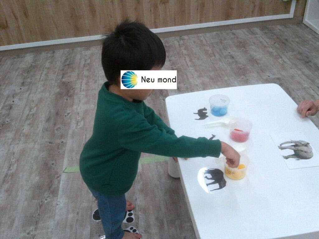 スプーンタワーでは指定された色のボールをスプーンですくい、落ちないようタワーまで運びます🥄