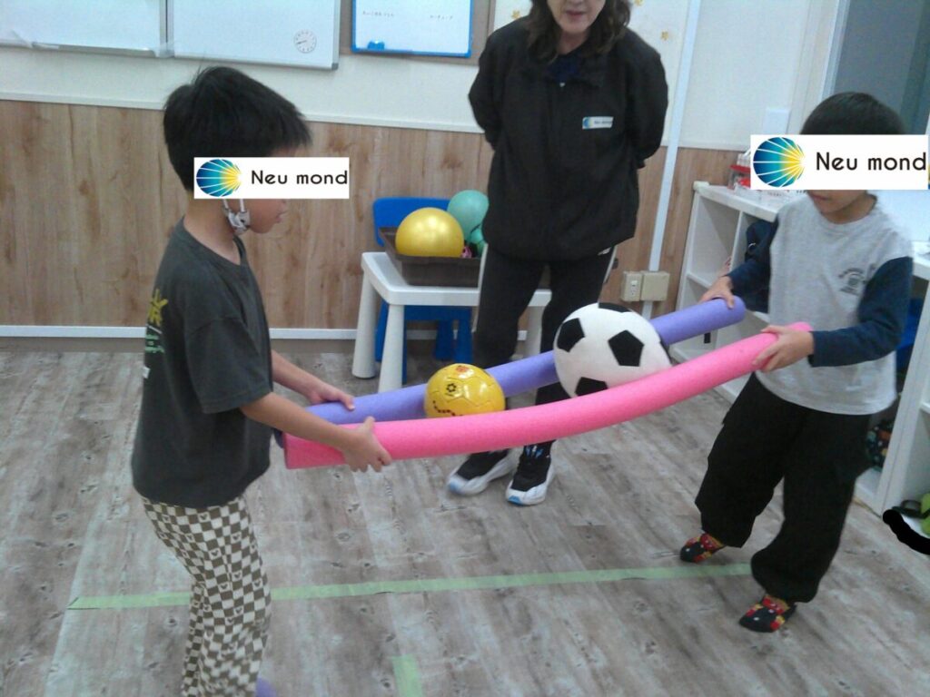 今日のトレーニングは、プールスティックでボール運びです! ペアになってボールを落とさないように運びます✨ そーっとそーっと… 最後はカゴに入れます! 小さいお友だちは公園に行きました! 太陽はぽかぽか、風は涼しくいい気持ちで遊べました😁 -