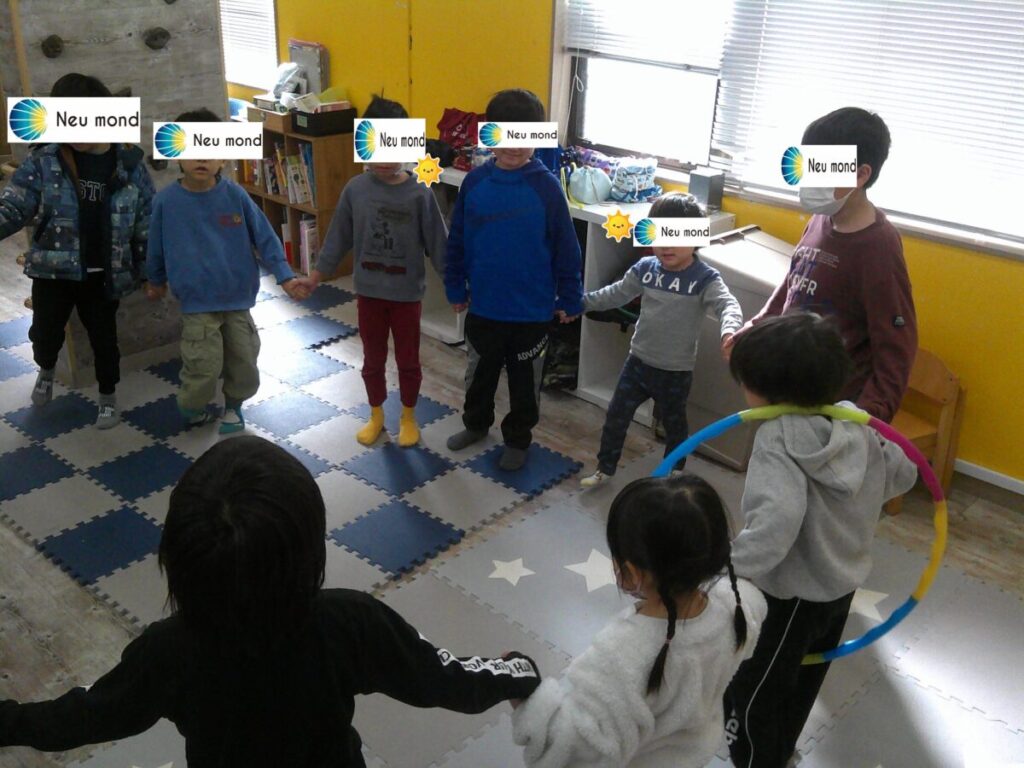 今日も寒い1日になりましたが、きっずモントはたくさんの子ども達で大賑わいです✨ 午前中は未就学の子たちも交えて室内でフープ渡しを行いました。みんなで円になって、手を繋いで1つのフープを落とさないように回します👀頭を抜いて…足を抜いて…とても上... -