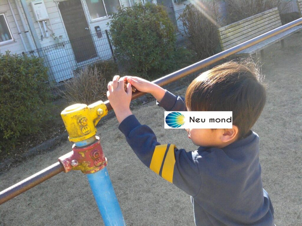 午前はとてもいい天気だったので公園へ出かけました! 落ちていた松ぼっくりを鉄棒に乗せたい!と頑張っていました☺ はしご渡りも一人でチャレンジ!頂上で向きを変えて、反対側へ降りることができました!(^^)! 小学生は旗揚げゲームからスタート!「赤あ... -