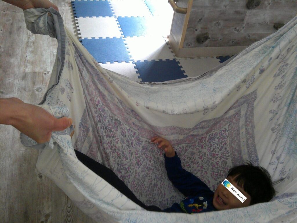 シーツブランコ、まねっこ、聞くゲーム・あべこべジャンプ