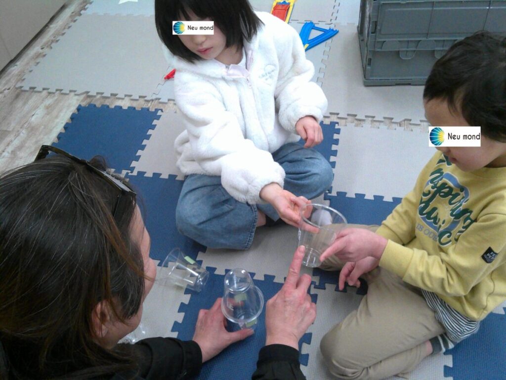 三人で力を合わせて💪🏻 一人一人一点だけを支えて、三人でコップを持ち、重ねていきます。 コツを掴むと上手にバランスが取れるようになり、どんどん積み上げることができました✨ みんな、無言で集中して取り組んでいました😉🎵 -