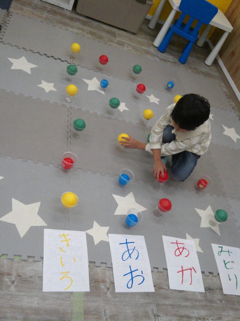 両手でカラーボールの入ったコップを持って、どんどん指定された色の位置へ。 全体像を把握して、コップが倒れないように気を付けて移動したり。4×6の規則的な場所を意識して、さらに倒れないように置きました👏🏻 小さなお友達は、サーキット運動を行いま... -