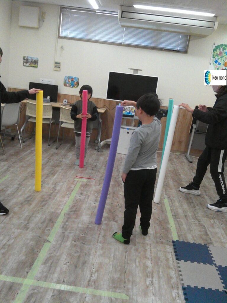 今日は先生も参加したトレーニングです✨ プールスティックをまっすぐ立ててみんなで輪になり呼吸を整えます💪🏻 みんなでアイコンクト👀「いくよ~」「成功させようね」 声に出さなくても気持ちで分かり合えます😲 せーのっっ!! 真っすぐにプールスティック... -