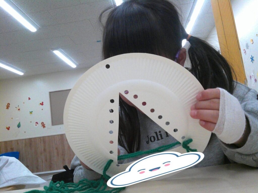 12月になりましたね⛄ きっずモントではクリスマス製作がはじまりました🎶 毛糸を順番に通して... オーナメントを作ります✨ みんなで一緒に作りました!! お見本はこんな感じ! 完成が楽しみですね😆 小さいお友達もがんばりました! オーナメント作りの後は... -
