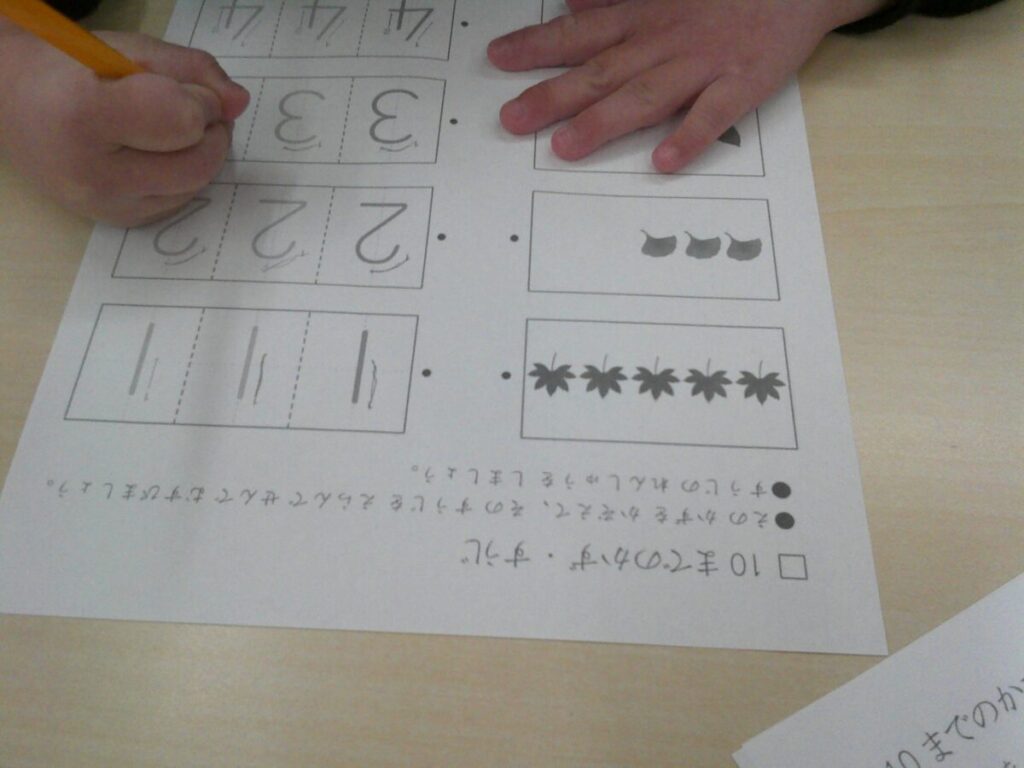 今日はプリントを使ったトレーニングです。 数字をいっぱい使いました! 沢山数字が羅列している中から指示された数字を探し出し、何個あるか数えるプリント... 数字をなぞって数を確認するプリント... さくらんぼ算をするプリント... 終わったお友達は先... -