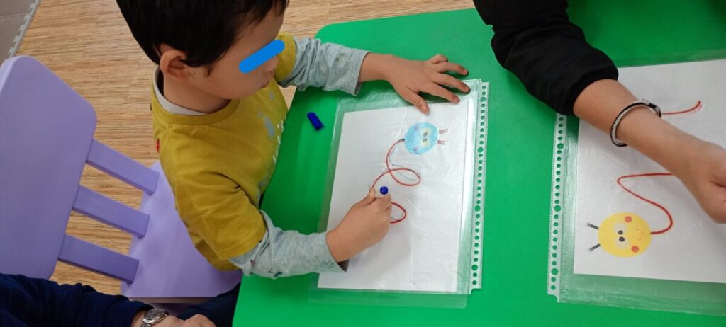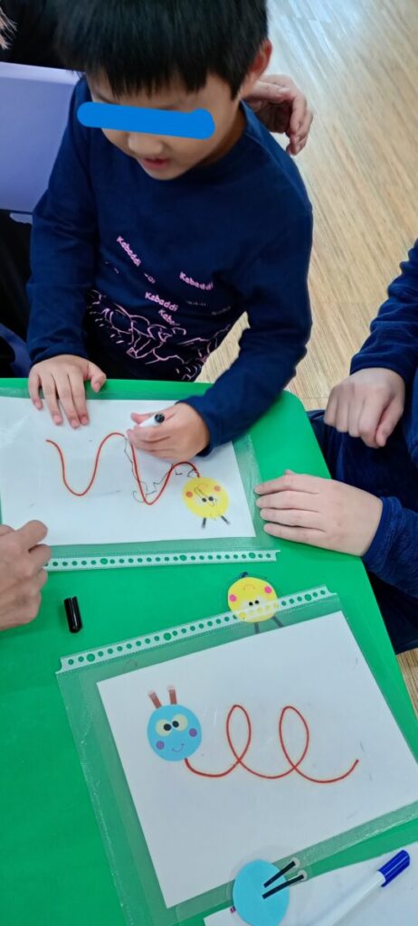 最後は椅子に座って机で指先トレーニング!✨