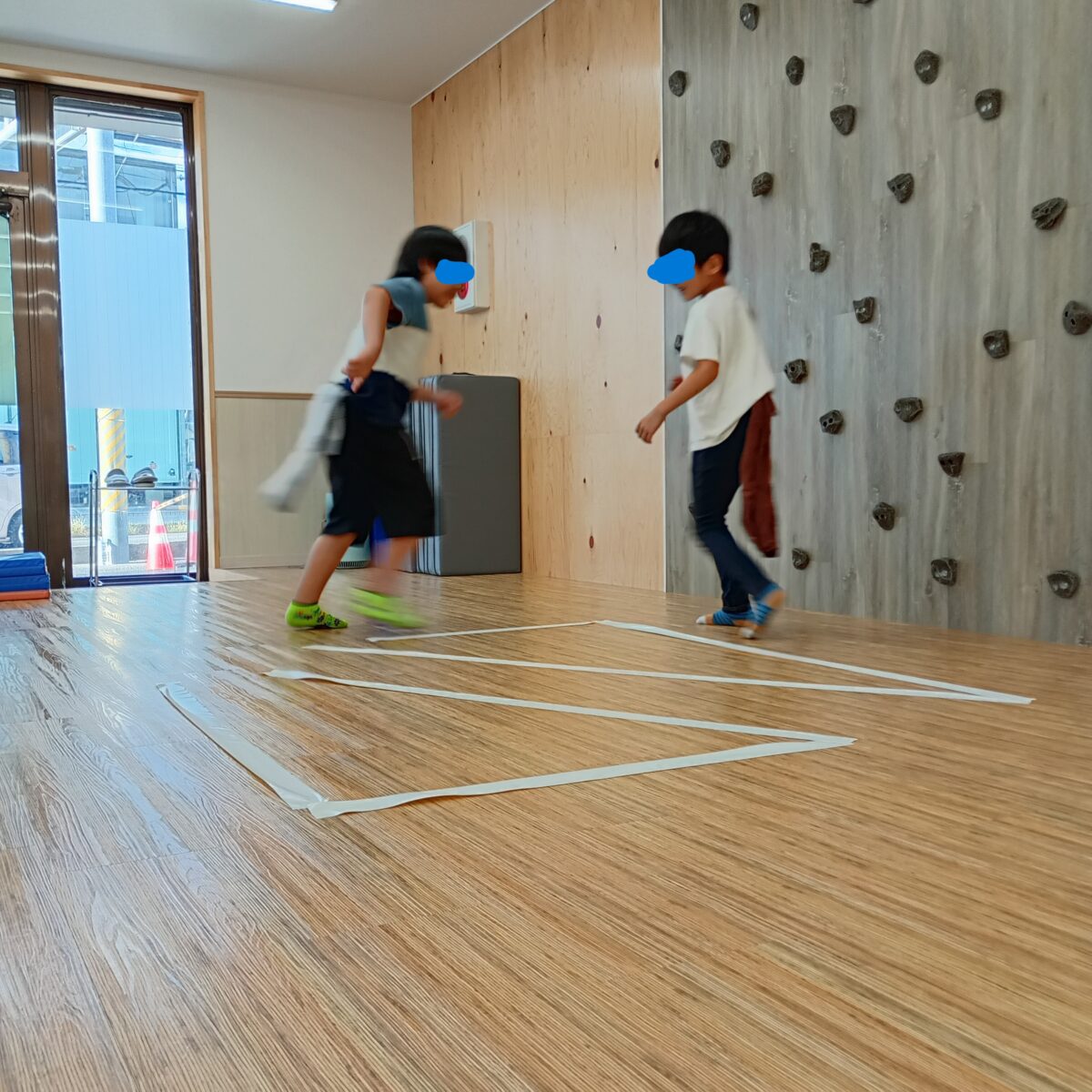 ただ走るだけでなく、床に貼った2つの三角形の間だけを通れる特別ルールを追加しました。✌️