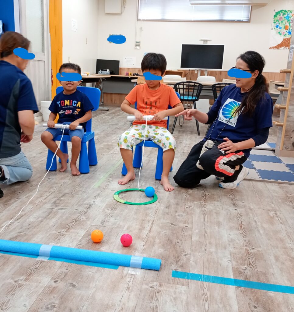小さいお友達は、フープに入っているボールを、障害物を乗り越え、少しでも多くのボールを自分の所に持ち運べるかのトレーニングでした。🏋🏻♀️