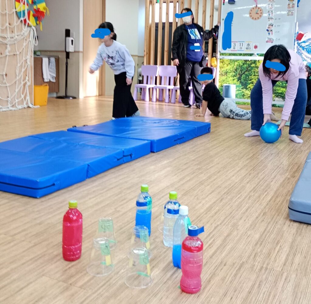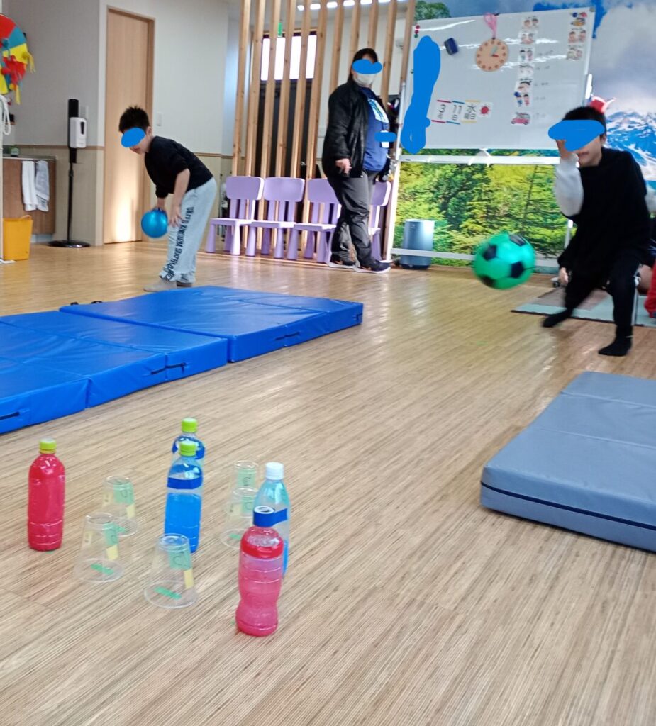 ボール🥎を投げる、転がす動作を通じて身体機能(目と手の協調、力加減)を高め、固有感覚の向上(重さや動くの感覚)