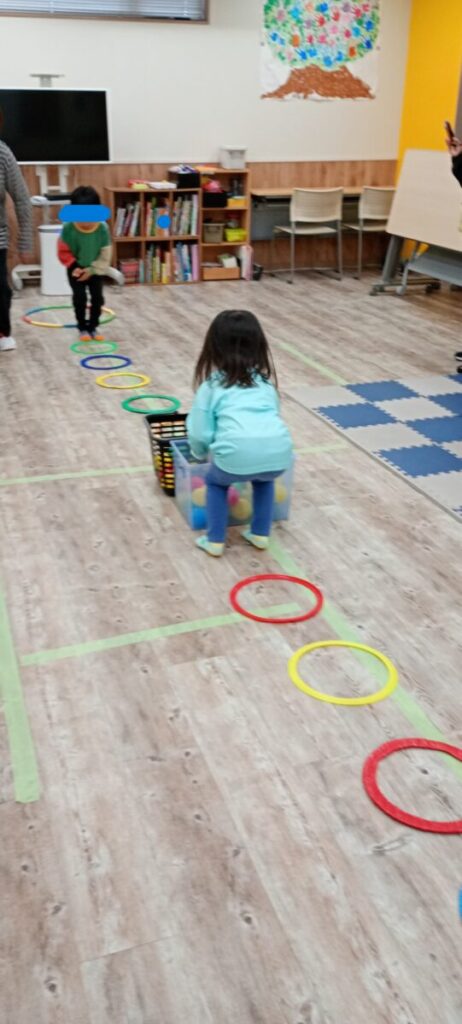 フープから出ないように両足でしっかりジャンプ!!ジャンプ!!!👏
