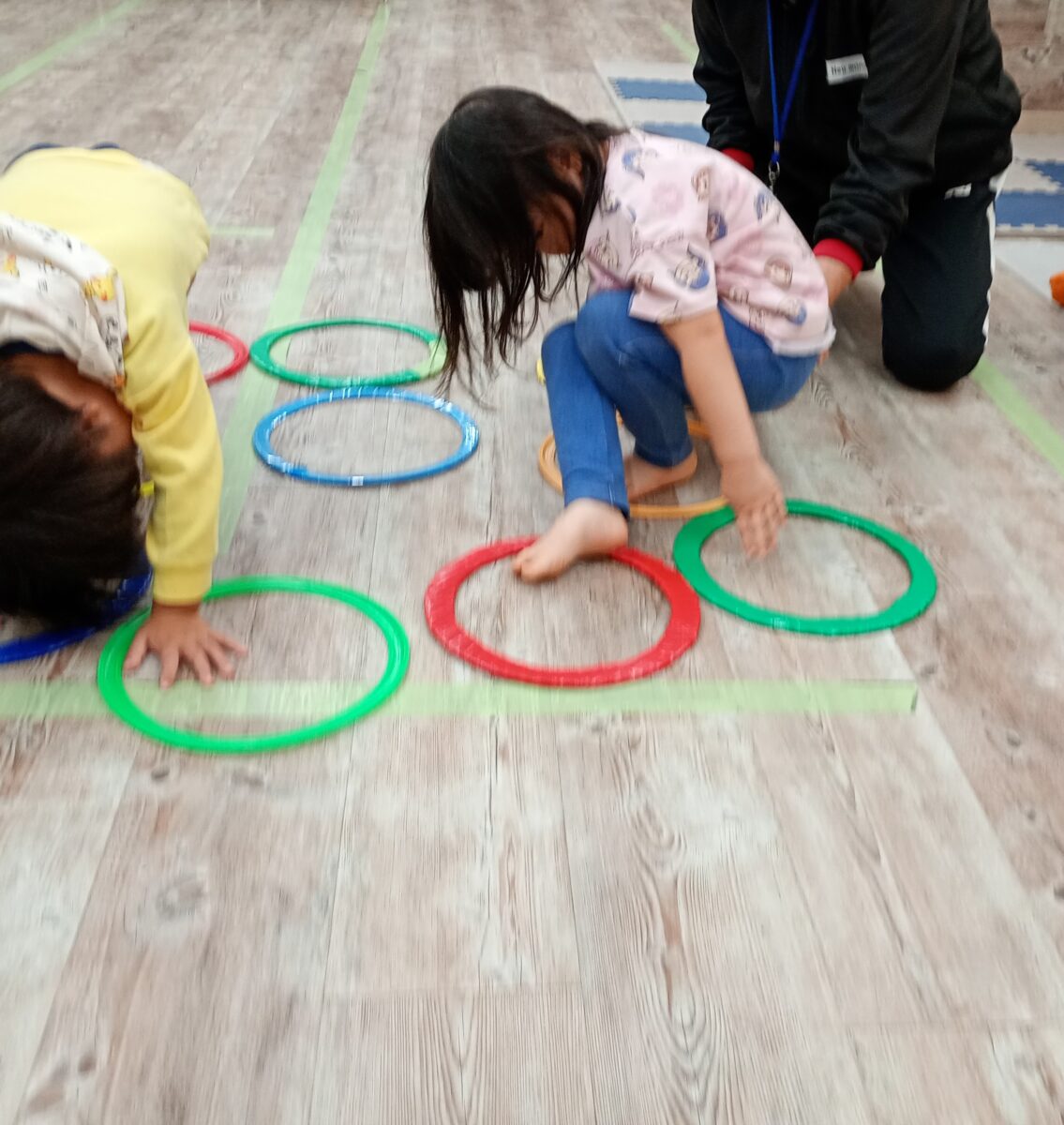 『右手は赤!!』『 左手は青!!』と次々と指示が入り、子供達はどう動いたらいいか!?を考え移動していきます。