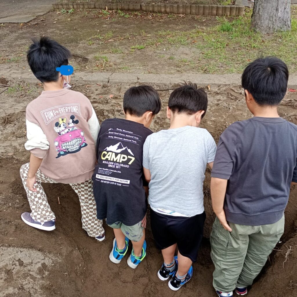 砂場に大きな穴を発見し、みんなで穴に入って座談会😆🤗