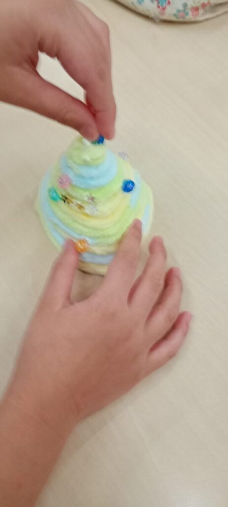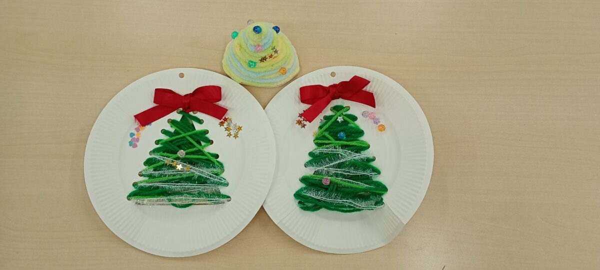 ミニツリー🎄とリース✨ 2025年12月6日 本日は、、小さいお友達もクリスマス製作に挑戦しました✌️ 紙皿を、、円錐にし周囲を可愛い毛糸でクルクルと施します🎄 更に、ビーズ等を使ってデコレーションしていきました✨ また、紙皿に毛糸を編んでいきます。ビーズやリボン🎀で仕上げます とっても可愛いミニツリー🎄リースの完成です✨ クリスマスが楽しみですね🥰 URL Copied!