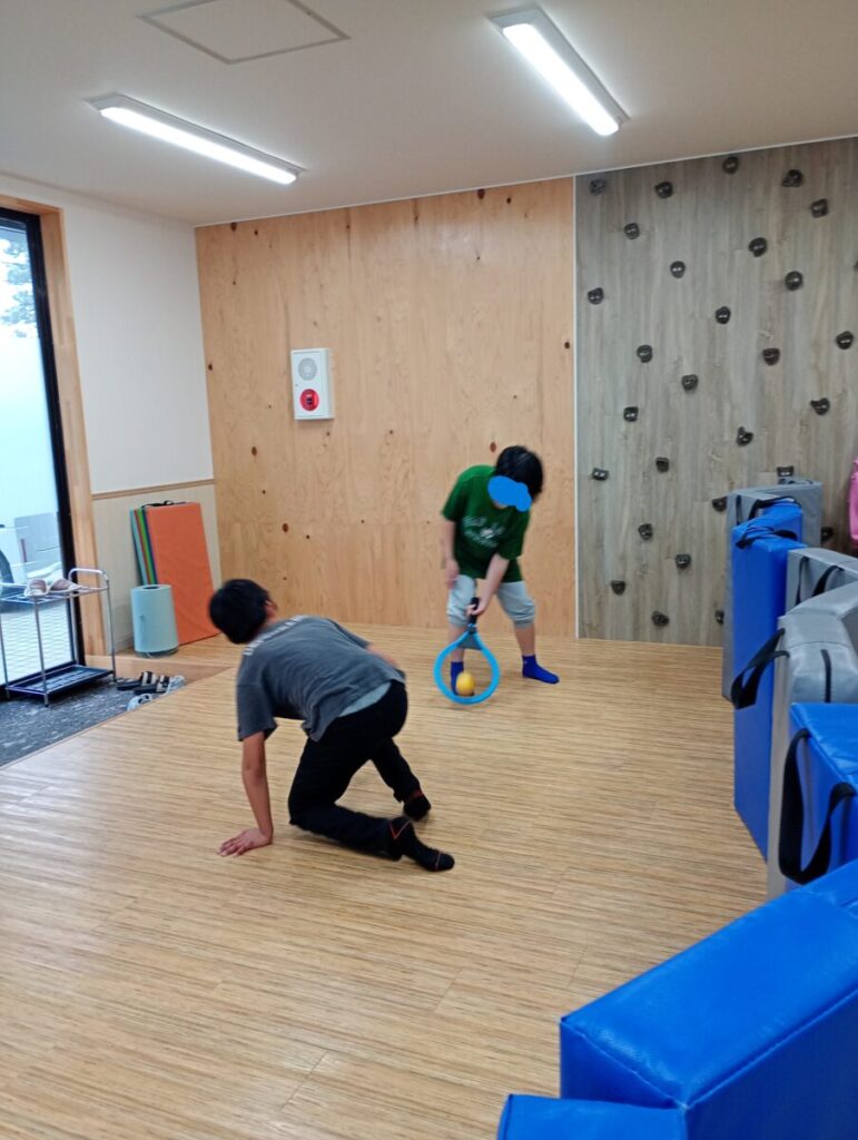 ボールが周りに跳ばないようにマットを広げて、、、配慮しながらテニスをしているお友だち↑↑↑