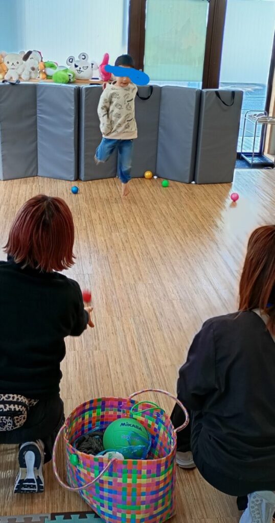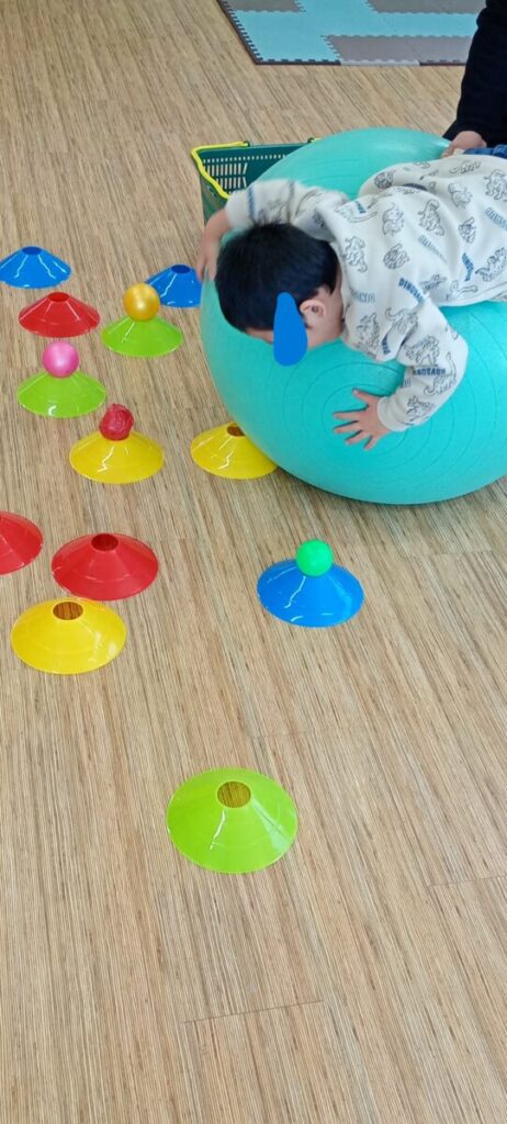 小さいお友だちは、バランスボール運動とボールよけを行いました☆彡