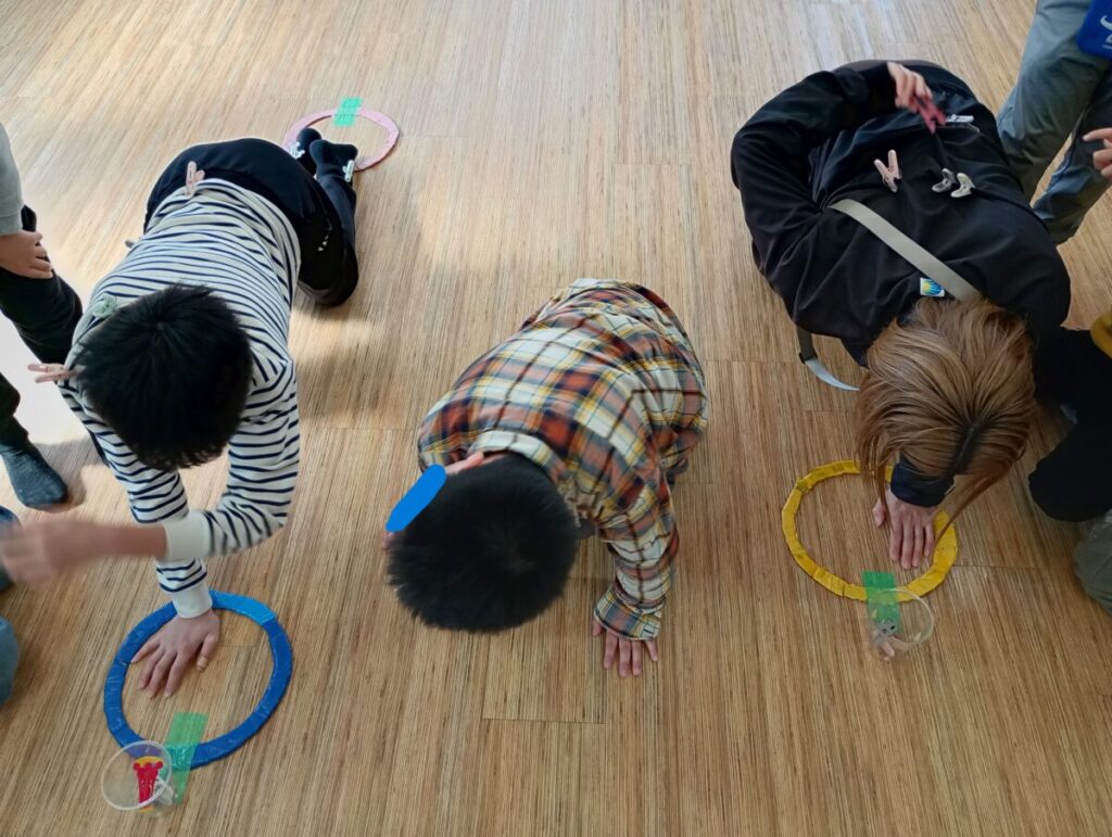 チームメイトは友達の体についている洗濯バサミを言葉のみで知らせます(^^♪