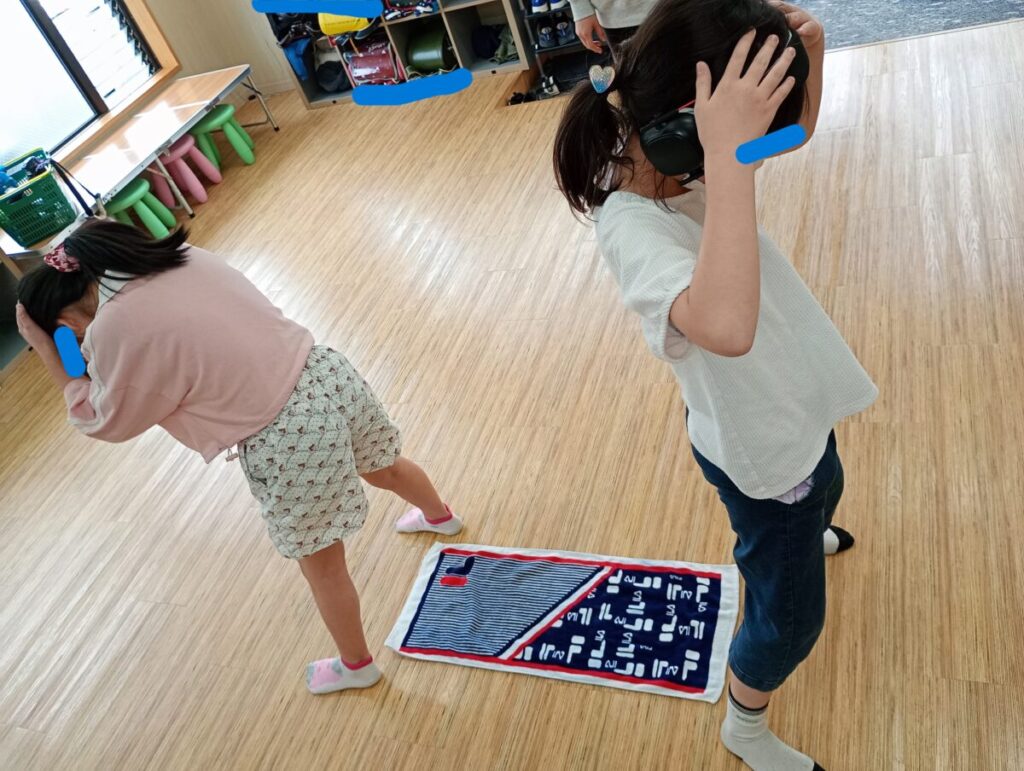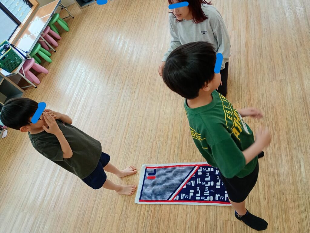 床のタオルを合図で素早く取る・集中力・瞬発力・体幹・ルール理解(抑制)を養う活動です(^^)/