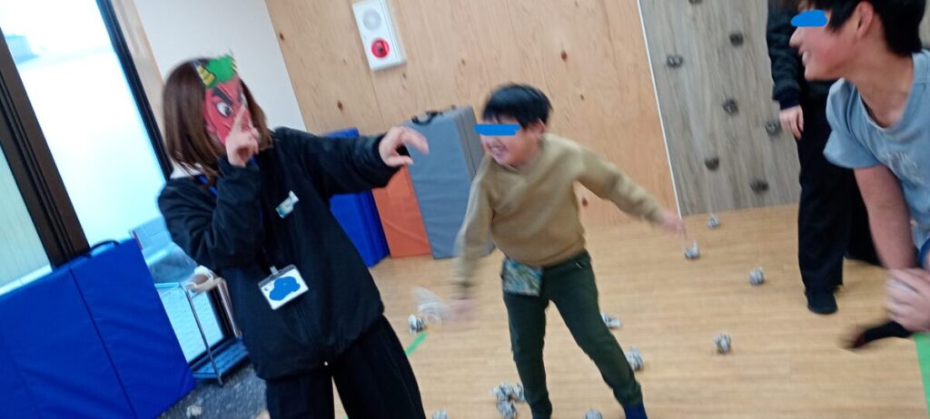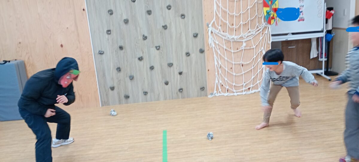 節分鬼あて! 2026年2月3日 今日は節分👹という事で鬼のお面を被った先生が登場です✨ スタート位置から鬼に捕まらないようすり抜け、退治するボールがあるところまで ダッシュします‼ ボールを鬼に向かって投げて当てると鬼退治成功です♪ ボールがあるところまでに鬼に捕まってしまうと最初からスクワットしてからやり直し😨 最初は中々すり抜けるのに苦戦していたお友だちも みんなで応援しながら見事鬼退治成功です💛 コントロール力もしっかり鍛えたトレーニングでした🎵 URL Copied!