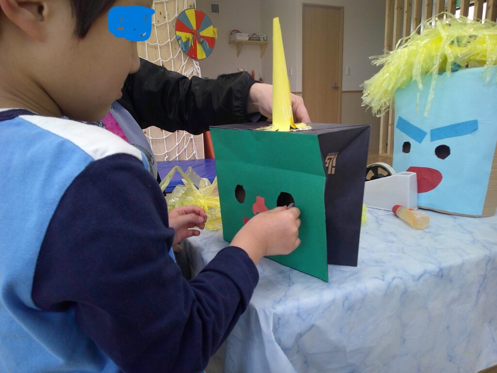 節分に向けて、、、テープをビリビリ裂いていきました。