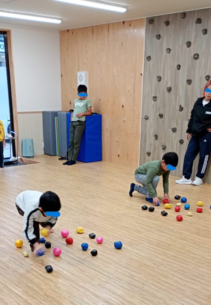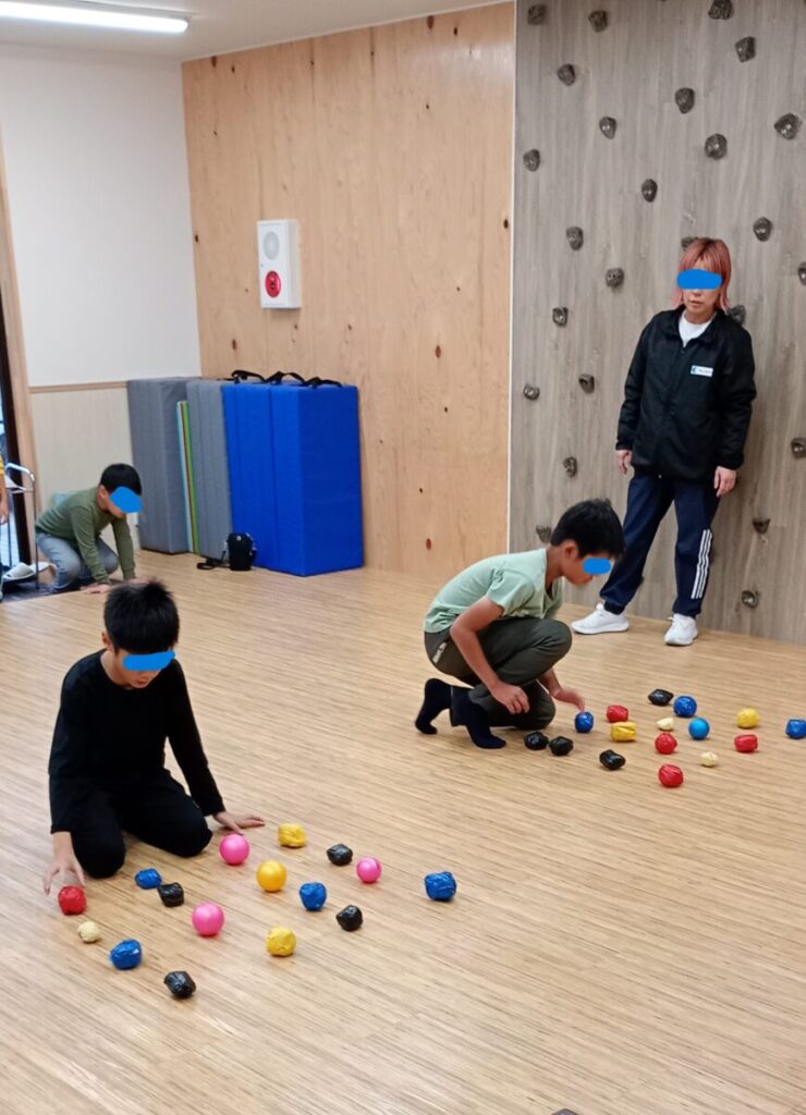 今日のトレーニングは、2チームにわかれて、バラバラに並びてある4色のボールを並び替えるトレーニングです。