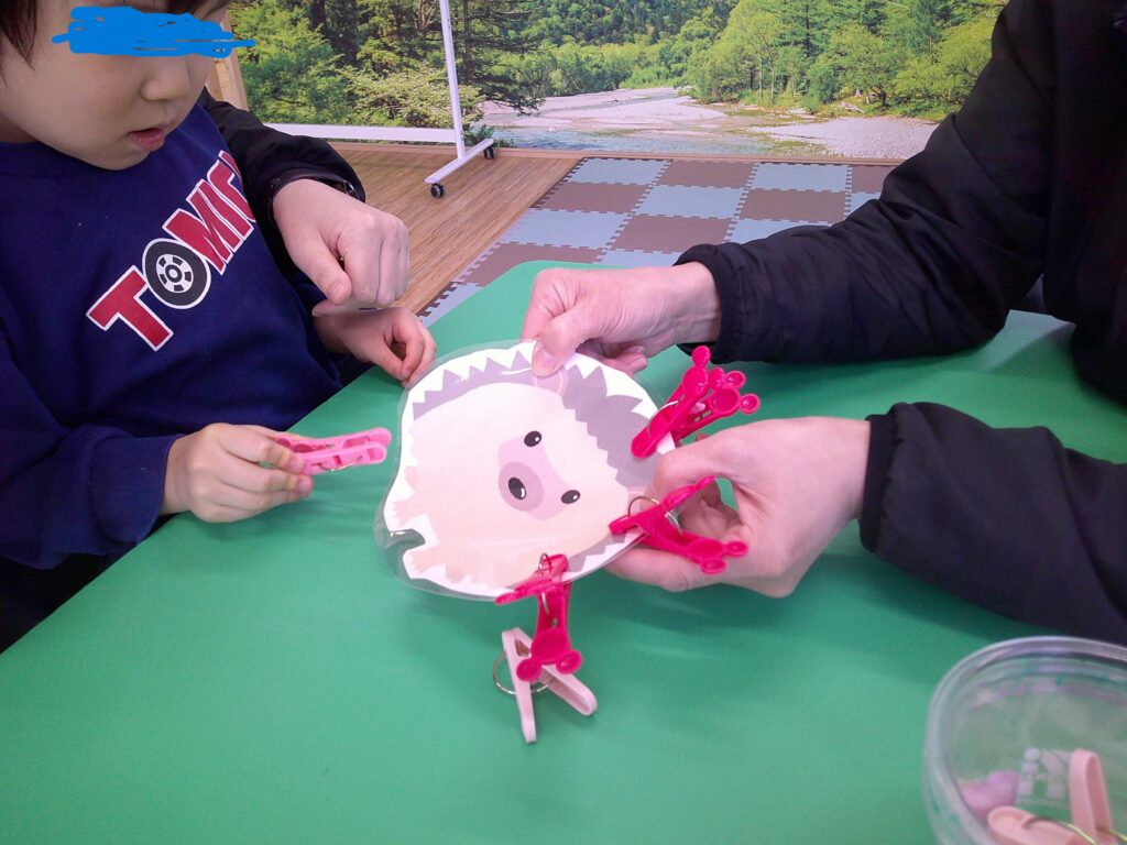 洗濯ばさみを持てたら そのまましっかり指先で押して紙に挟む練習もしました✨