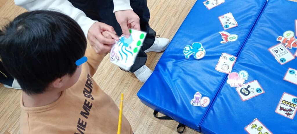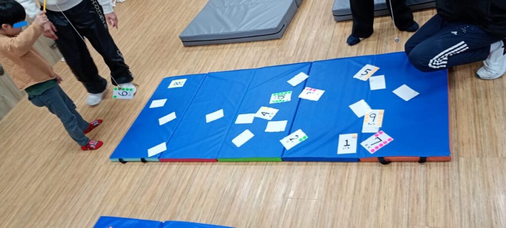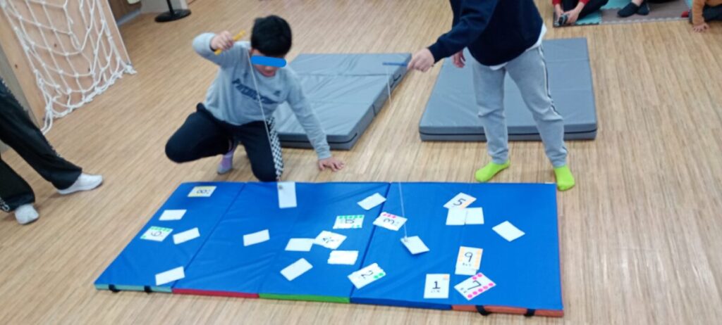 計算しよう🤩 2025年11月17日 今日は跳躍眼球トレーニング✌️ はじめに、でんぐり返しをし、まず問題を釣って読み上げます。 そしてお次は、答えとなるカードを釣ってもらいました✌️ 少し難しい計算問題でも、諦めずに頑張っていました👏 レベルに合わせ、問題を変えて取り組みました✌️ 数をしっかり理解し、同じ数を見つける事が出来ました💕 URL Copied!