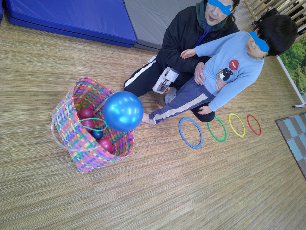 次はボールをかごに入れる練習です!腕の力のコントロールが大切ですね!