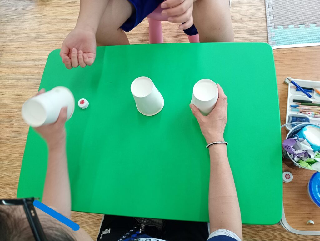 赤いボタンは ど~こだ⁉ 2025年6月4日 今日のトレーニングは、赤いボタンの動きを目で追っていくトレーニングです。 3つのコップ全てに違う種類のボタンが入っている状態で、コップが様々な位置へシャッフルされたのを赤いボタンがどこにあるかを見極めます😀 学年が大きいお友だちは、3つから4つのコップへの挑戦をしました👏🏻 みんながしっかり赤いボタンを、目で追うことができました🧐✨ 3つ、4つ、5つとどんどん数を増やして挑戦していきたいですね‼️ URL Copied!