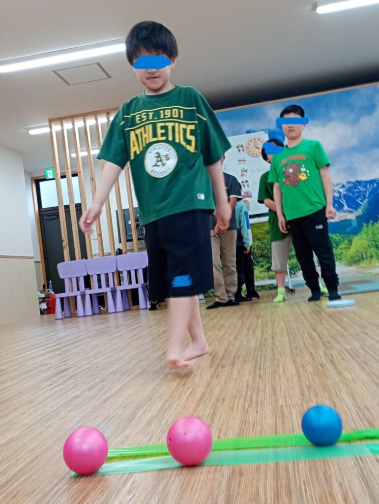 転がしぺったん 2026年4月13日 今日はボールを5個使ってトレーニング! 床に貼ったガムテープに向かってボールを転がしていくトレーニングです。 ボールが弱すぎるとテープに辿り着かず、 強すぎてもテープを通りこして転がってしまいます! 今日は自分の体の力加減やコントロールを調整する力をつけてもらう目的です💛 狙いを定めて集中して転がしていて、お友だちのも応援したり ハラハラドキドキ・・・( ^ω^)・・・ 見事ぺったん!くっつける事ができました🌸 URL Copied!