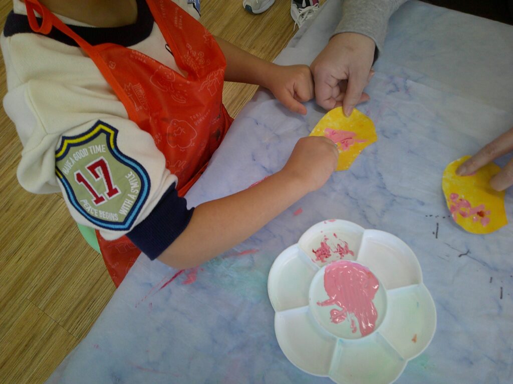 製作活動を通して筆を使って絵の具を塗る練習をしました😊