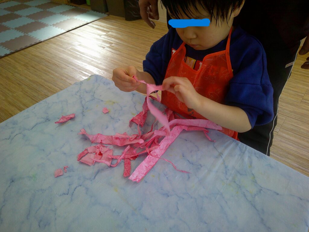 最後は指先を上手に使って紙を裂く取り組みをしました!🌸