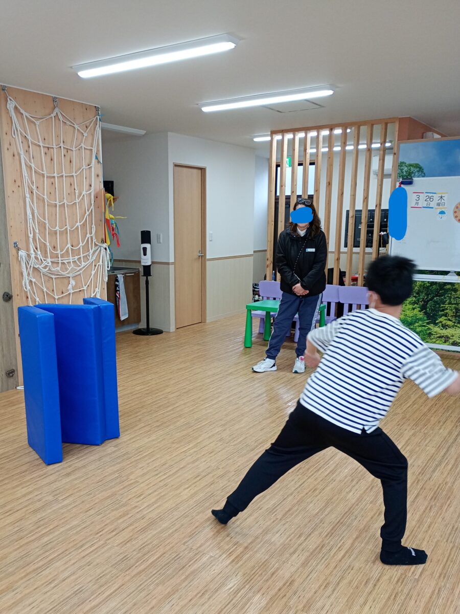 上投げと横投げでどっちだと倒れるかな❓と大きいお友だちに