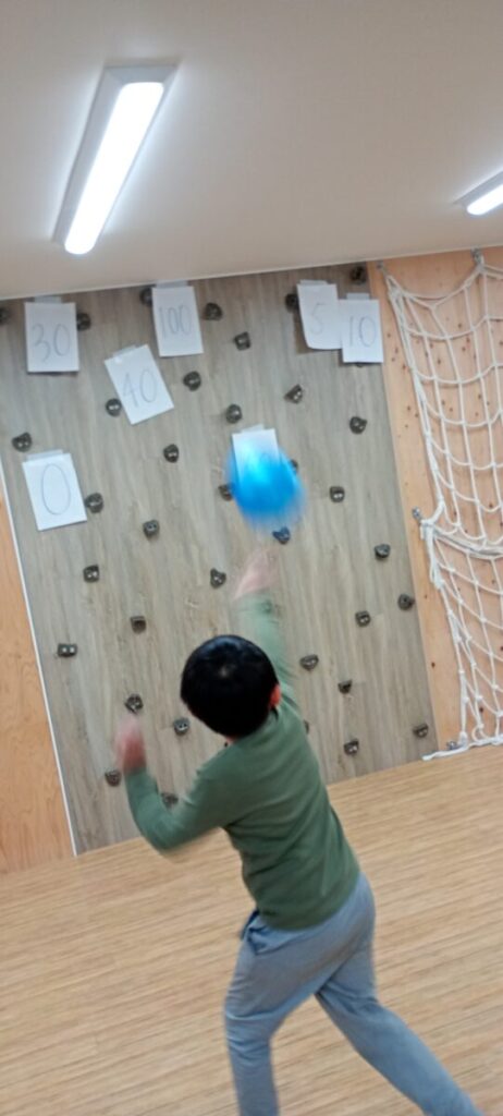 大きいお友達は、壁を使いボールをワンバウンドさせて、落とさない様に次のお友達に繋げて行くトレーニング✨ そしてプラスして点数ゲームも追加!数字めがけてバウンドす…