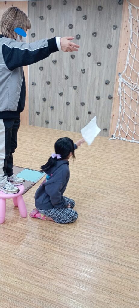 今日はお箸を使って、トレーニングを行いました☺️ 頭の上から、紙が降ってきます🎊その紙をお箸でキャッチ💪 キャッチする側からは、いつ落ちてくるか見えず、タイミン…