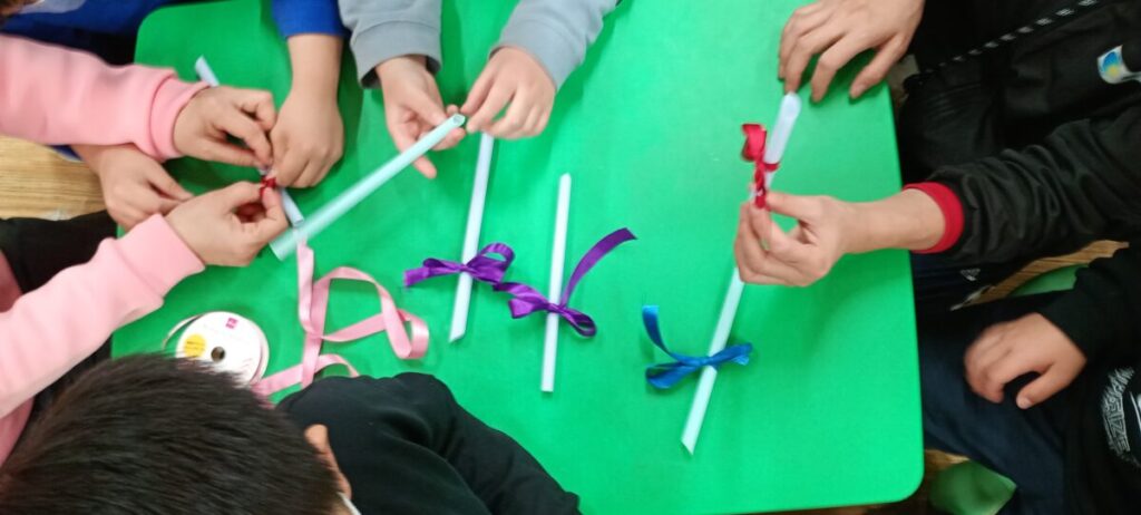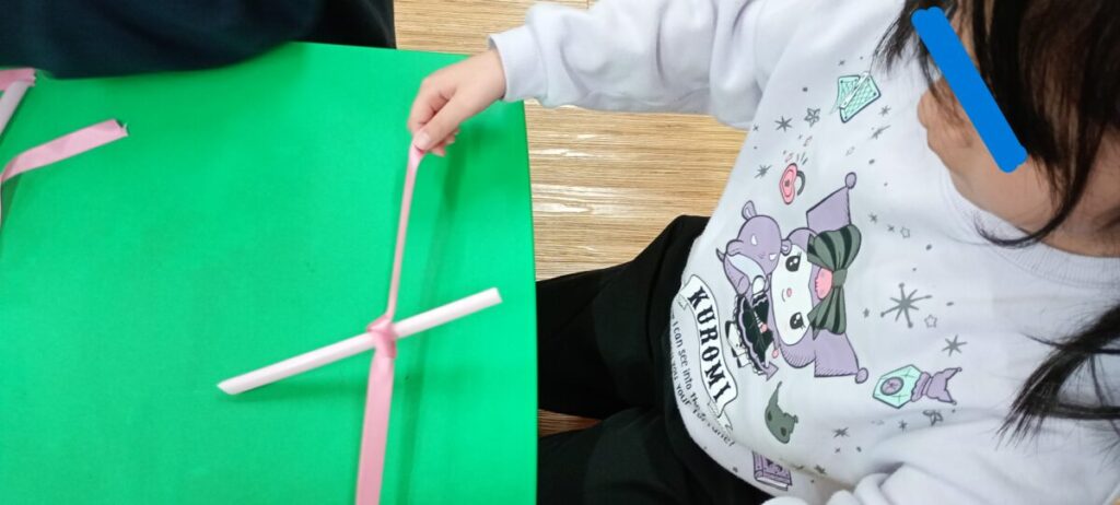 大きいお友達は、クリスマス制作です。 ずっと製作中のリースを製作したり.. 新たに飾るためのリボンを作りました。 これはかなり苦戦… でもみんな先生…
